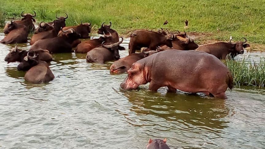 Rise up and we will pack the breakfast for an exquisite bush experience. Private early morning game drive at the Kasenyi Plains, home to lions, elephants, buffalo, with nature's chance of leopards. In the afternoon, enjoy a private Kazinga Channel boat cruise, one of Africa’s richest wildlife water corridors. Romantic sunset views at Twin Crater Lakes and private dinner options available.<br. Overnight: Mweya Safari Lodge / Enganzi Game Lodge